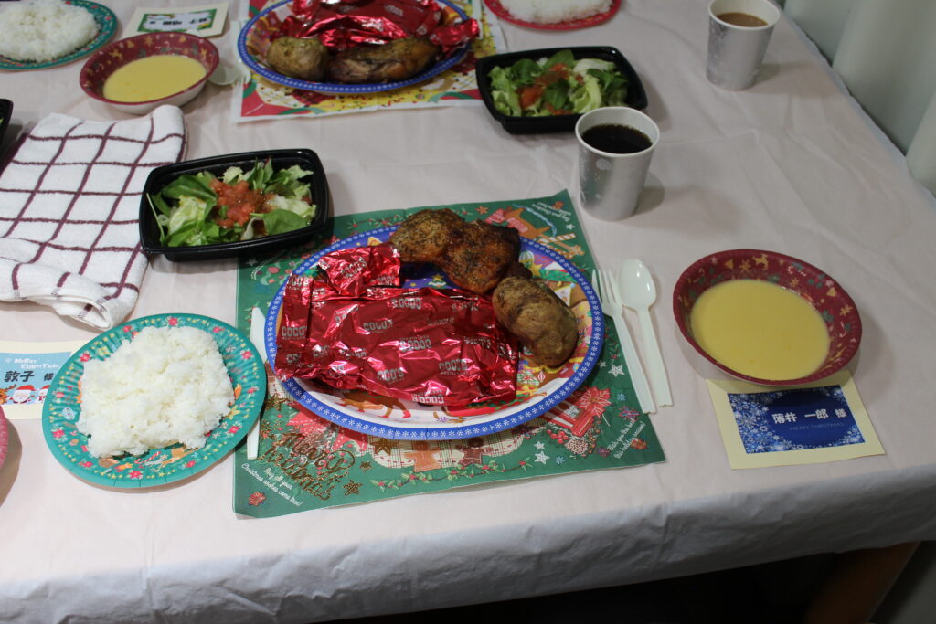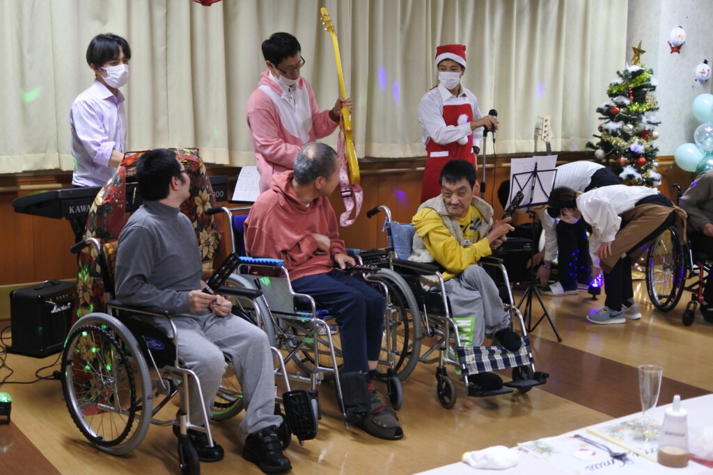 会場は手作りの装飾で彩られ、いつもとは少し違う特別な雰囲気に。 サンタクロース(?)の登場に歓声が上がったり、皆様でケーキを囲んだりと、あちこちで笑顔の花が咲きました。 プレゼントを手にした皆様の嬉しそうな表情に、私たち職員もたくさんの元気をいただいた一日でした。