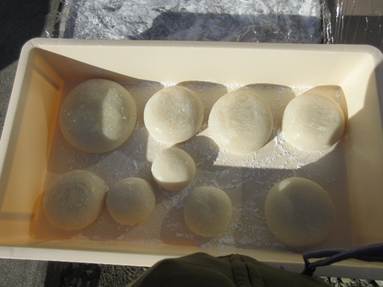 ついたお餅は丸く形を整えて、鏡餅にも♪