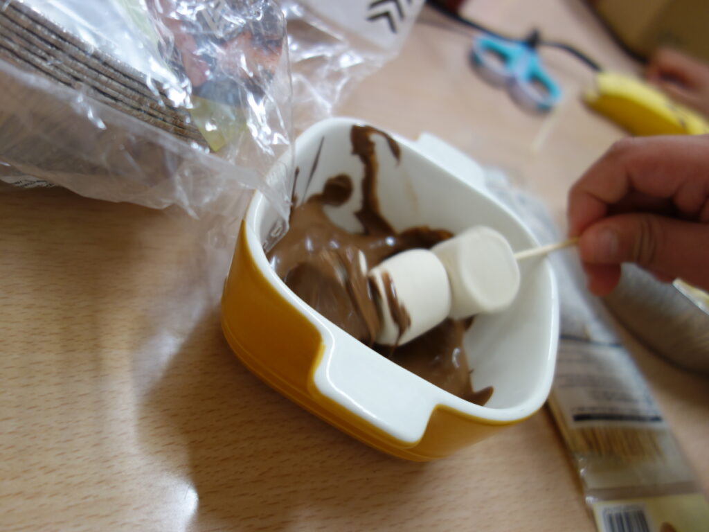 マシュマロ、バナナ、バームクーヘン(?)を用意したのですが、一番人気はマシュマロでした♪
