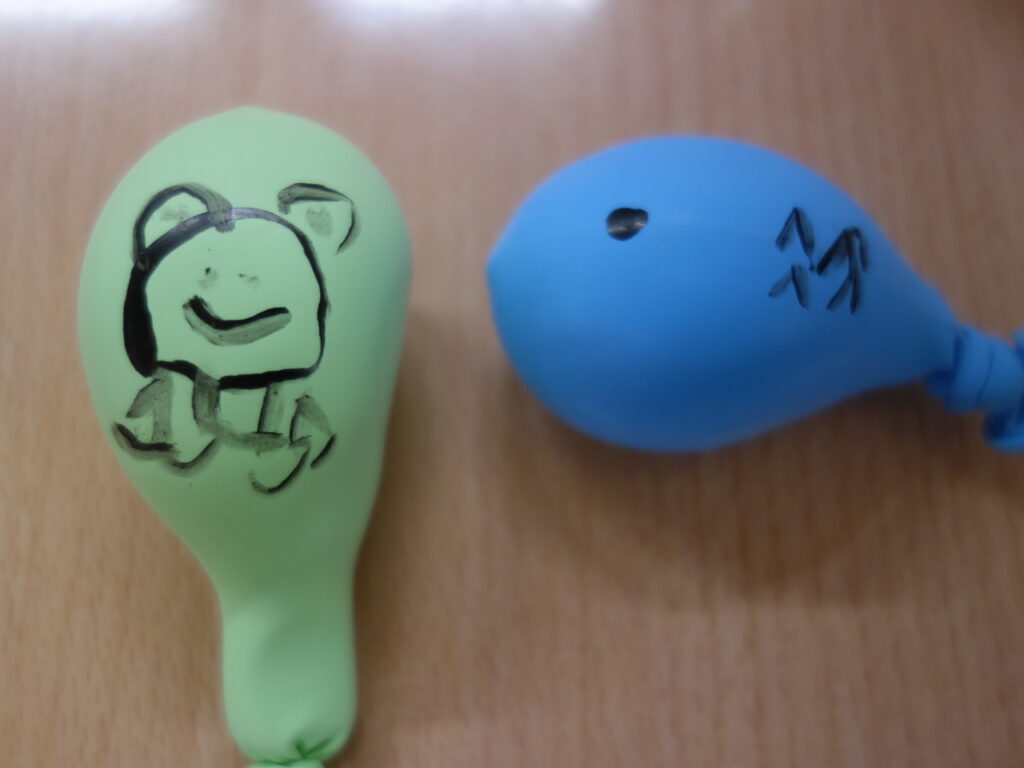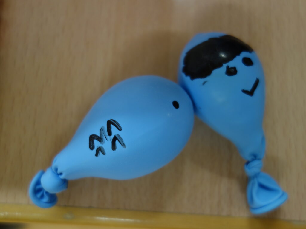 結んだ口の部分をしっぽに見立てて魚を描いたり動物に大変身している子どもたちもいました♪