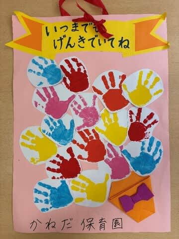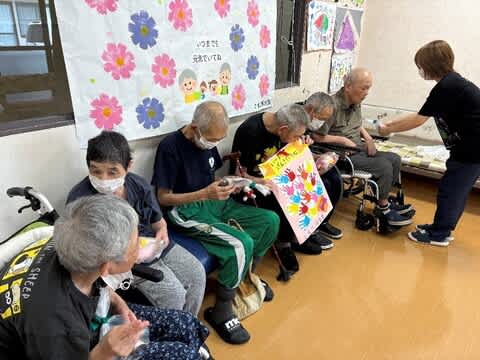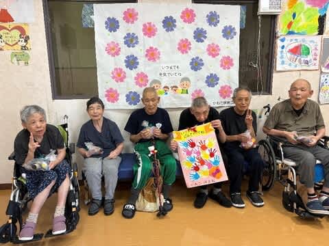 令和7年8月30日(土)かねだ保育園の園児達から敬老の日ということで、那須共育学園の利用者へ、とっても素敵な手作りプレゼントをいただきました🎁