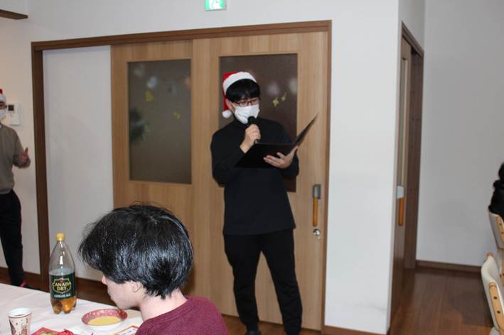 総合司会の職員Hさん。聖書の一節を話してクリスマス会スタートです。
